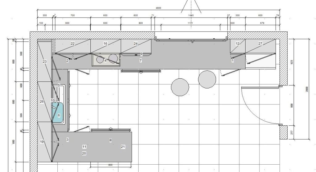 Küchenplanung für einen offenen Raum.