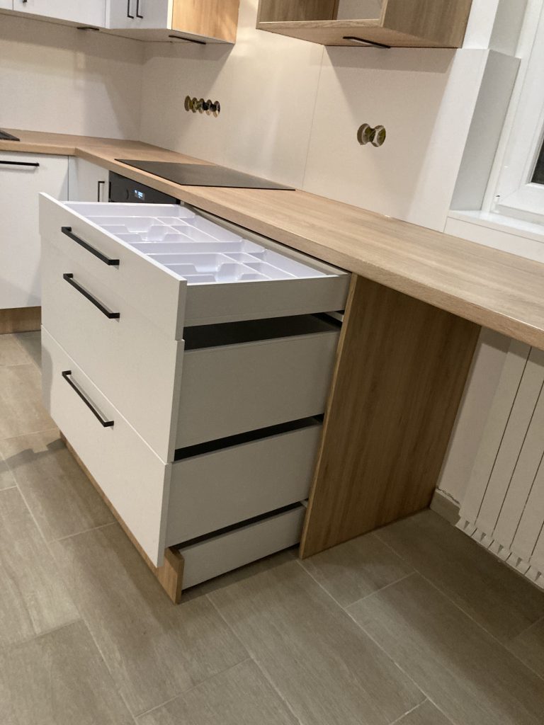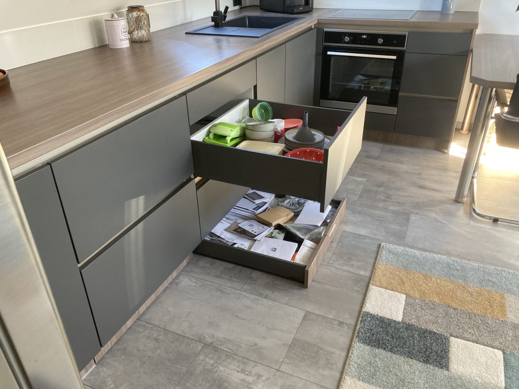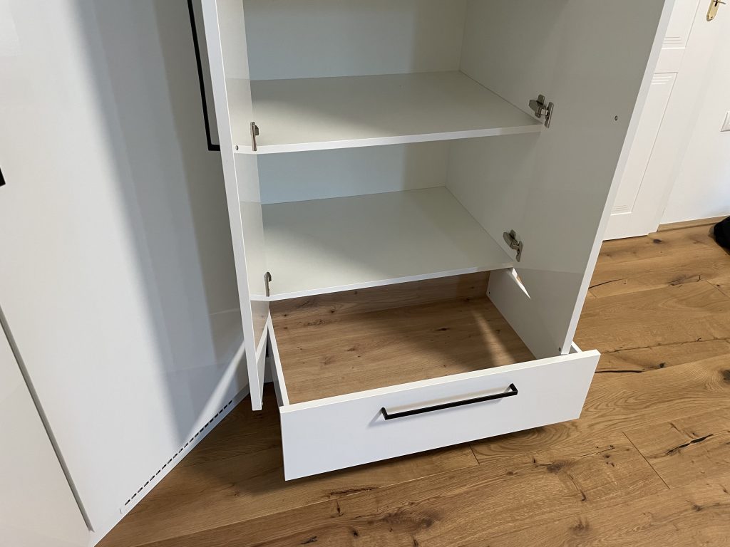 Hochwertige Ladenbeschläge mit Softeinzug – optional mit Tip-On und in verschiedenen Farben erhältlich.