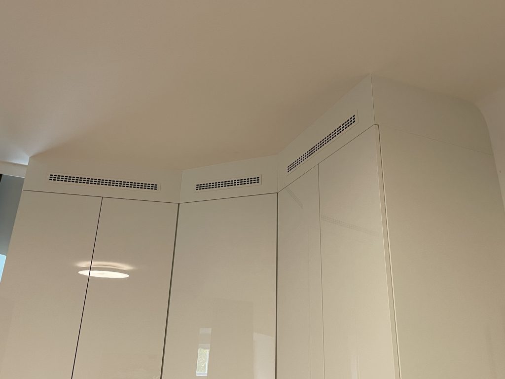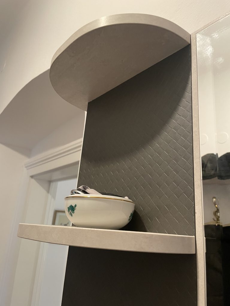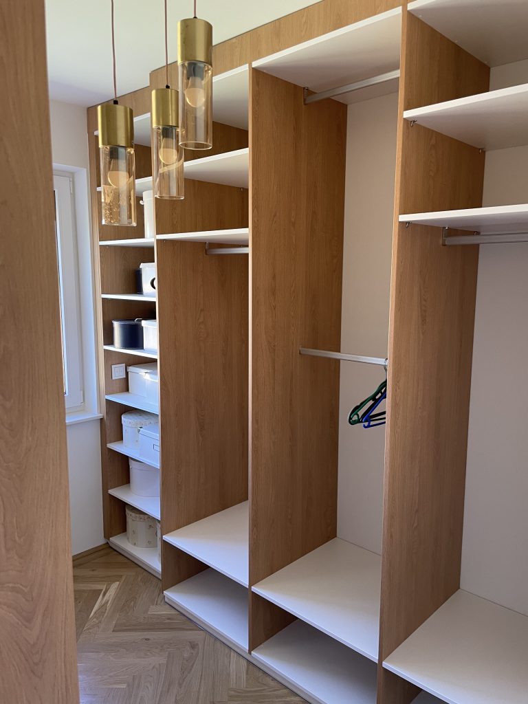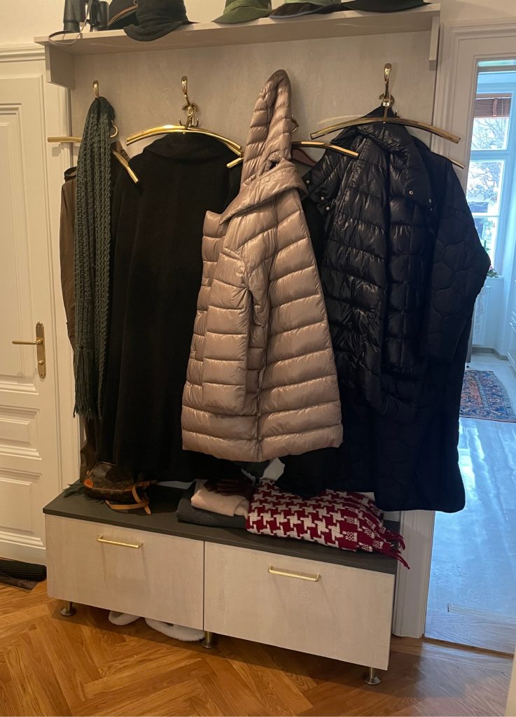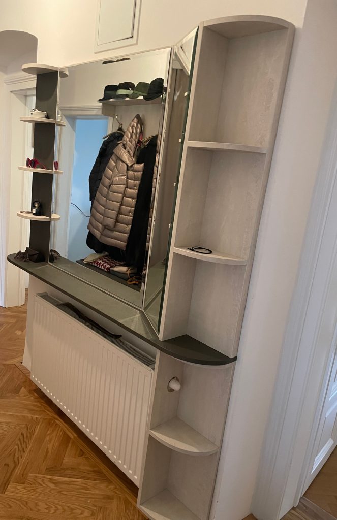 Zweifarbige, offene Garderobe mit Touch-Laden.