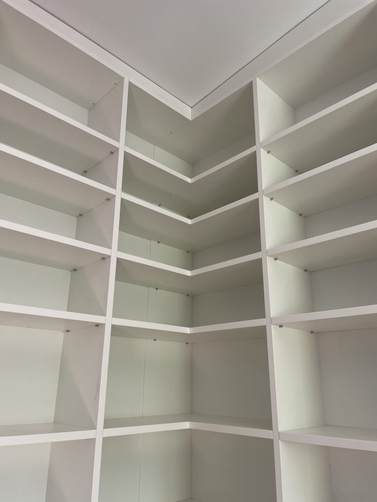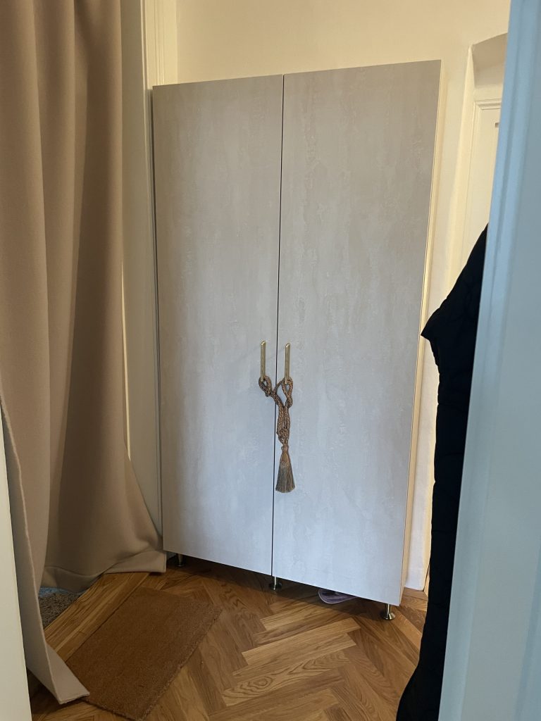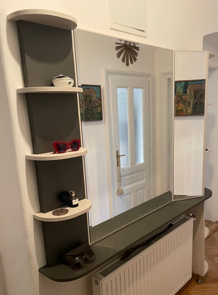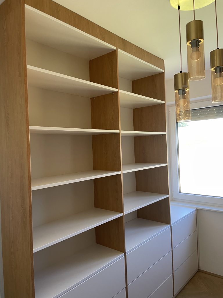 Zweifarbige, offene Garderobe mit Touch-Laden.